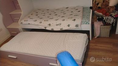 vendo letto a castello tre posti, COM MATERASSI, usato pochissimo.