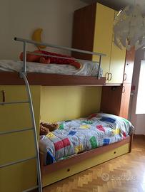 Pratica armadiatura costituita da 3 letti a castello, uno a scomparsa, e armadi molto capienti.