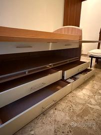 Vendo letto a castello a scomparsa con due panelli a scomparsa tipo scrivania e quattro cassetti.