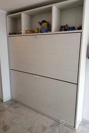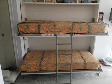 Vendo bellissimo letto a castello a scomparsa, come nuovo, come da foto, comprensivo di 2 materassi. Ritiro a carico dell’acquirente. L 2.10 H 2.40 P 0.35