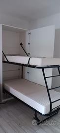 Letto a castello a scomparsa comprensivo di materassi quasi mai usati di dimensioni: 100 cm x 85 di profondità e 220 cm di altezza (220 cm di lunghezza quando aperto).
