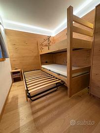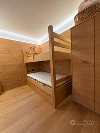 Letto a castello artigianale in legno rovere massiccio.