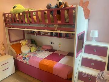 Vendesi € 1000 (mille) letto a castello per bambina Moretti Compact con tre posti letto e scalini contenitori ottime condizioni. Il prezzo non comprende i materassi.