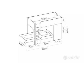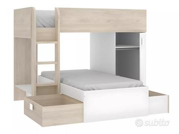 VENDO LETTO A CASTELLO USATO IN OTTIMO STATO dotato di 2 letti da 90x190 (senza materassi), 2 cassetti e 1 armadio contenitore da 50x90 h108. € 300