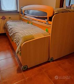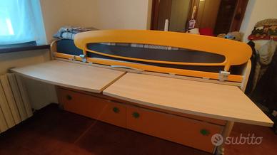 Vendo semi letto a castello,misure materasso singolo standard,con due cassettoni,due cassetti e due scrivanie estraibili.