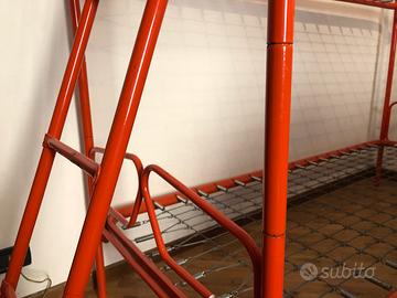Letto a castello, struttura in metallo componibile, anche come due letti singolii. Reti per materassi 190*80. Altezza rere superiore 115, inferiore 23. Comprensivo di scaletta e barra di protezione, due materassi. Ritiro previo accordi.
