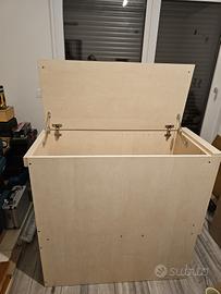 letto 200 * 91 cm e alto circa 150-160 cm è compreso di due cassetti sotto al letto inferiore un mobile scaletta composto da un cassettone e un'antina totale ingombro 83 x 50 cm altezza 76 altezza scalino 35 cm cad in più un altro mobile scala con anta a ribalta più cassettone laterale che permette di salire al letto superiore totale ingombro 104 per 47 cm 101 altezza non sono compresi i materassi è già tutto smontato e pronto per il ritiro che sarà a carico dell'acquirente