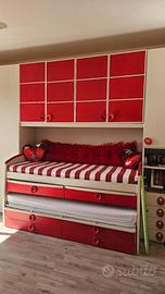 Letto a castello come nuovo bianco e rosso con compresi i materassi