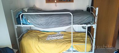 Letto a castello in metallo, con doghe in legno, letti separabili. Pagato 200 euro un anno fa.