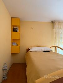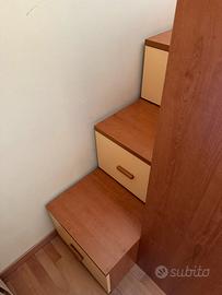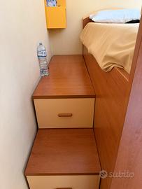 Sono presenti una scrivania ampia, 3 cassettoni e una cassapanca sulla “discesa” del lettino sopra.