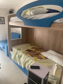 Vendo letto a castello in ottime condizioni con due cassettoni sotto colore blu e bianco marrone