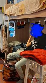 Letto a Castello usato pochissimo. Color legno chiaro. Comprensivo di scaletta, due cassetti e due materassi praticamente nuovi. La foto in blu è di quello esposto all'Asta del Mobile, negozio in cui lo abbiamo acquistato.