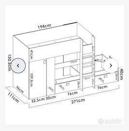 Letto a castello con armadio moderno con due letti 90x190 , due capienti cassetti e due materassi di cui uno Eminflex. La struttura è in ottime condizioni con qualche piccolo segno di usura. Acquistata quasi due anni fa.