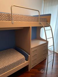 Letto a castello con cassettiera e scrivania