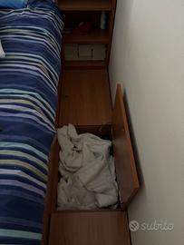 Doppio letto: letto a terra con sotto due cassetti grandi e letto sopra con altri due cassetti grandi