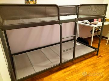 Letto a castello con struttura in metallo (h. 132 l. 97 l. 207) comprensivo di 2 materassi (200x80 h. 10) usati pochissimo e non macchiati e comunque sfoderabili. Il letto è già smontato al piano terra.