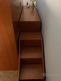 Letto a castello con relativa pedana, utilissima per permetterti di rifare il letto superiore con estrema facilità, salvaspazio per poter riporre diversi oggetti, quali lenzuola, piumoni ecc ..