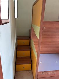 Struttura letto a castello in buone condizioni, comprensiva dei moduli scalini e passaggio , entrambi utilizzabili come contenitori dí indumenti, cuscini, comperte …