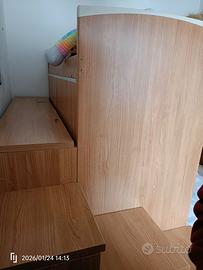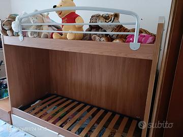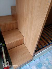 Letto a castello per bambini. Tutta la scala è contenitore, in più ci sono due cassettoni sotto al letto. Disponibili anche i due materassi. Smontaggio a carico dell'acquirente.