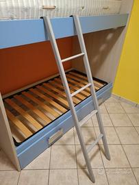Vendo letto a castello Arredissima usato da meno di 5 anni, in buone condizioni. 🔹 Colore: legno chiaro e azzurro, perfetto per una cameretta luminosa e moderna 🔹 Struttura solida e ben tenuta 🔹 Due cassettoni spaziosi integrati, ideali per riporre giochi, vestiti o lenzuola 🔹 Scala inclusa, pratica e sicura per salire al letto superiore 📏 Ideale per ottimizzare lo spazio in cameretta, mantenendo ordine e funzionalità. 💡Il letto è smontabile per facilitare il trasporto. 🚚 Ritiro a carico dell’acquirente (Il letto deve essere trasportato da chi lo acquista) 📏Misure: Lunghezza: 200 cm Larghezza: 101,5 cm Altezza:187 cm 👉 prezzo leggermente trattabile 📩 Contattami per informazioni o per vederlo senza impegno ⚠️ Si prega di contattare solo se realmente interessati