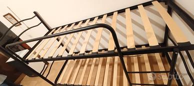 Vendo letto a castello in ferro, colore nero, divisibile (si può trasformare in due letti singoli) con doghe... usato praticamente 2 volte, pari al nuovo, con scaletta integrata come da foto.