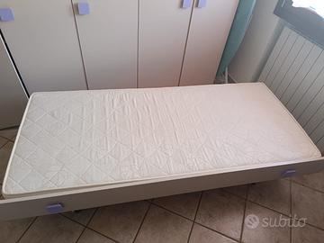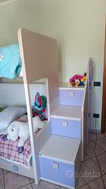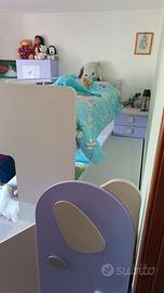 Vendo bellissima struttura letto a castello della Doimo CityLine, nota azienda italiana che utilizza materiali di alta qualità e vernici atossiche. La cameretta è molto robusta e in ottime condizioni. COMPOSIZIONE: - Letto superiore con protezione e letto inferiore. - 3° Letto: Include una rete estraibile a doghe (sotto il letto inferiore) perfetta per gli ospiti. - Scaletta Laterale: Comoda e sicura, composta da gradini che sono veri e propri cassetti contenitori (molto capienti). -Colori: Elegante combinazione di Bianco, Lilla e Tortora (adatta a diverse età). -Sicurezza: Protezione anticaduta in metallo bianco inclusa. -Materassi esclusi -Meccanismi dei cassetti e reti perfettamente funzionanti