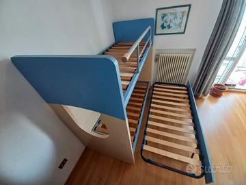 Causa inutilizzo, vendo della ditta DOIMO CITYLINE, Letto a castello con terzo letto estraibile. Doghe in legno. Lunghezza 2,026 profondità 0,90 altezza 1,76 (altezza rete superiore 1,40) completa di scaletta rimovibile. Struttura molto bella e robusta mantenuta in ottimo stato. Il letto viene consegnato smontato a piano terra. Trasporto a carico dell'acquirente. Si precisa che nella vendita non sono compresi i materassi.