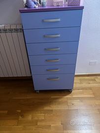 Letto a castello, con cessettoni più due cassetti più piccoli, compreso di scrivania incorporata, lunghezza 2,10m, larghezza 90 cm. Settimino altezza 1,22m larghezza 63cm. Moretti