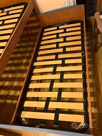 Vendo letto a castello h 120cm con secondo letto estraibile. Doghe, colore faggio con profili azzurri