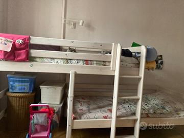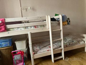 Letto a castello Flexa. In legno chiaro. misure di ingombro come da foto 3 metri per 1,1 metro. Il singolo letto ha un ingombro di 2,1m per 1,1. i materassi (190x90) non sono compresi. E' già smontato. Ritiro o spedizione a carico del compratore