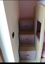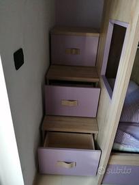 Letto a castello come nuovo con corridoio superiore e tanti contenitori e cassetti. Materassi non inclusi nel prezzo. Costo materassi 100€ per entrambi .Disponibile per altre informazioni o foto.