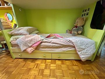 letto a castello smontato con cassettoni e materassi larghezza 202 lunghezza 178 profondità 88