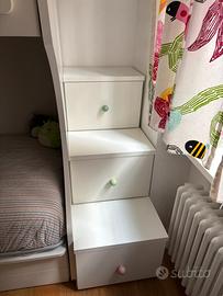 Il letto è fornito di meccanismo che permette al letto superiore di venire in avanti e abbassarsi pet permettere di rifare il lètto comodamente.Marca rinomata per camerette bambini.