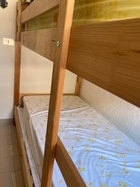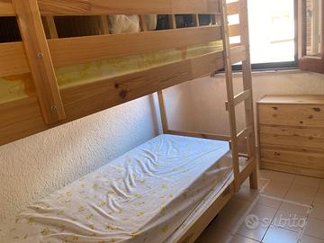 Vendo letto a castello IKEA mod. MYDAL” in legno di pino mai usato in quanto non mi serve. Vendo anche i materassi di qualità. Ottimo prezzo.