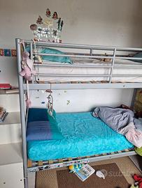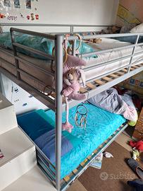 Vendo Letto a castello ikea modificato, con scaletta che fa da mobile contenitore, comodi e capienti contenitori con coperchio, 2 reti con doghe in legno (aggiunte sul letto, sempre articolo ikea du misura) A Mestre.