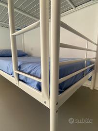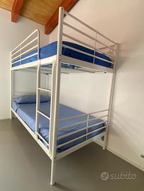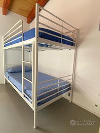 Letto a castello Ikea, struttura in metallo, color bianco. Misure: 207 × 96 x 160 cm. Completo di due materassi usati pochissime volte, Tutto come nuovo, in condizioni perfette.! Trasporto e smontaggio a cura dell’acquirente.
