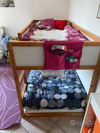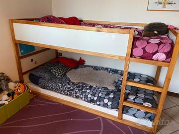 Letto a castello composto da letto reversibile IKEA KURA più rete e materasso, studiato per avere un letto a castello più basso di quelli standard . Possibile utilizzo anche come letto singolo KURA. Vendo un materasso a parte. Lunghezza: 209 cm Larghezza: 99 cm Altezza: 116 cm Altezza sotto il letto a soppalco: 83 cm. Carico massimo: 100 kg Lunghezza materasso: 200 cm Larghezza materasso: 90 cm Spessore max materasso: 12 cm Già smontato causa trasloco, trasporto a carico dell’acquirente.