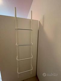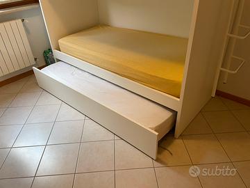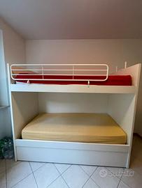 Vendo letto a castello in legno bianco in condizioni ottime, acquistato nel 2022. Misure: 100X180X200. Terzo letto a cassetto estraibile e rialzabile. Vendo solo steuttura, non materassi.