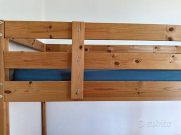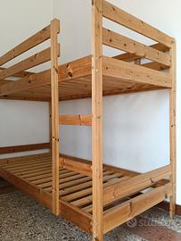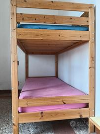 Letto a Castello in Pino Massiccio + 2 Materassi OMAGGIO Si vende letto a castello realizzato interamente in vero legno di pino massiccio, ideale per chi cerca stabilità e durabilità che i mobili in truciolato non possono offrire. Il letto è usato ma in buone condizioni strutturali. Il prezzo è volutamente basso perché si richiede all'acquirente di occuparsi dello smontaggio e del trasporto. Soluzione perfetta se si vuole risparmiare il 70% rispetto al nuovo. il letto si trova nella città di Ferrara- zona acquedotto - in palazzina al terzo piano senza ascensore. Dimensioni: Standard per materassi 90x200 cm . Scaletta robusta originale. Barriera di sicurezza per il letto superiore. Necessario portare propri attrezzi per lo smontaggio e auto spaziosa o furgone per il trasporto.