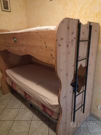 letto a castello in legno completo di reti e materassi con rete superiore ribaltabile per facilitare il rifacimento del letto