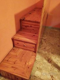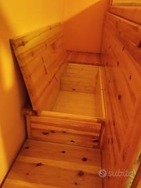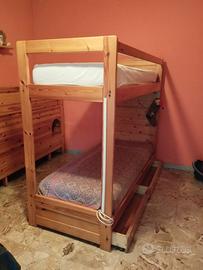 Causa trasloco, vendo letto a castello più scaletta compresa di cassapanca e 2 cassettoni estraibili da sotto il letto inferiore. Materassi a 1 piazza. Struttura in legno massello.