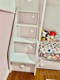 Vendo letto per bambina in legno, colore bianco e rosa, dal design dolce e moderno (tema nuvole/fiori), tenuto benissimo e usato pochissimo. Marca Moretti compact