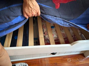 Vendo un letto a castello di Maison du Monde, acquistato nel 2020 e pagato 1.000€ ma ancora in ottime condizioni, con cassettone contenitore per coperte e cuscini, doghe in legno, senza materassi. Smontaggio a carico dell’acquirente, disponibile dai primi di luglio.