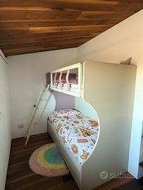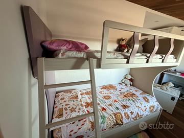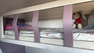 Vendo letto a castello con 3 letti(uno a scomparsa) provvisto di tutti e 3 i materassi nuovi. Mai usato. Vendo per rinnovo camera. Colore beige e lilla. Marca giessegi.