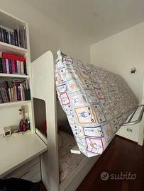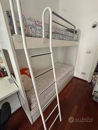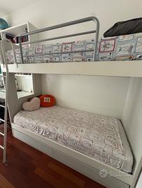 Letto a castello in rovere bianco, con meccanismo, con due cassettoni, scaletta e pannello. Misure 203x86. Disponibile solo al ritiro. Smontaggio a carico dell'acquirente.