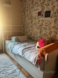 Letto a castello in legno laccato bianco con scaletta ed eventuali tendine. Esclusi materassi 85x200 cm.