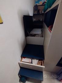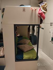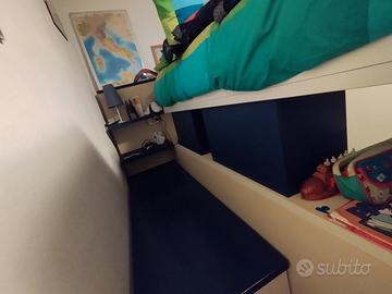 Vendo letto a castello x cameretta bambini, comprato in mobilificio della zona. Usato ma in buone condizioni, al letto in alto si accede comodamente con la scaletta che è anche contenitore molto comoda anche x rifarlo. Se interessati regalo materassi.