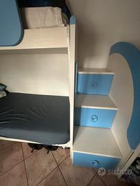 Vendo letto a castello moderno con struttura in legno verniciato, completo di scala a destra con cassetti integrati per lo spazio di archiviazione. Ideale per camerette, perfetto per bambini o ragazzi. Condizioni ottime, pronto all’uso. Disponibile per ritiro. Ci sono anche i cassetti sotto il letto come nell ultima foto. Contattami per maggiori dettagli!