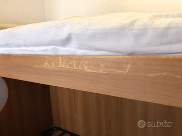 Vendo letto a castello in legno dotato di due comodi cassetti con rotelle, scaletta per salire e barra di protezione per il piano alto.