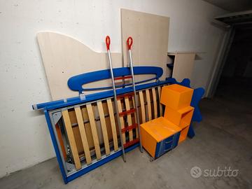 Design moderno e colorato nei toni blu e arancione, perfetto per una cameretta allegra e funzionale